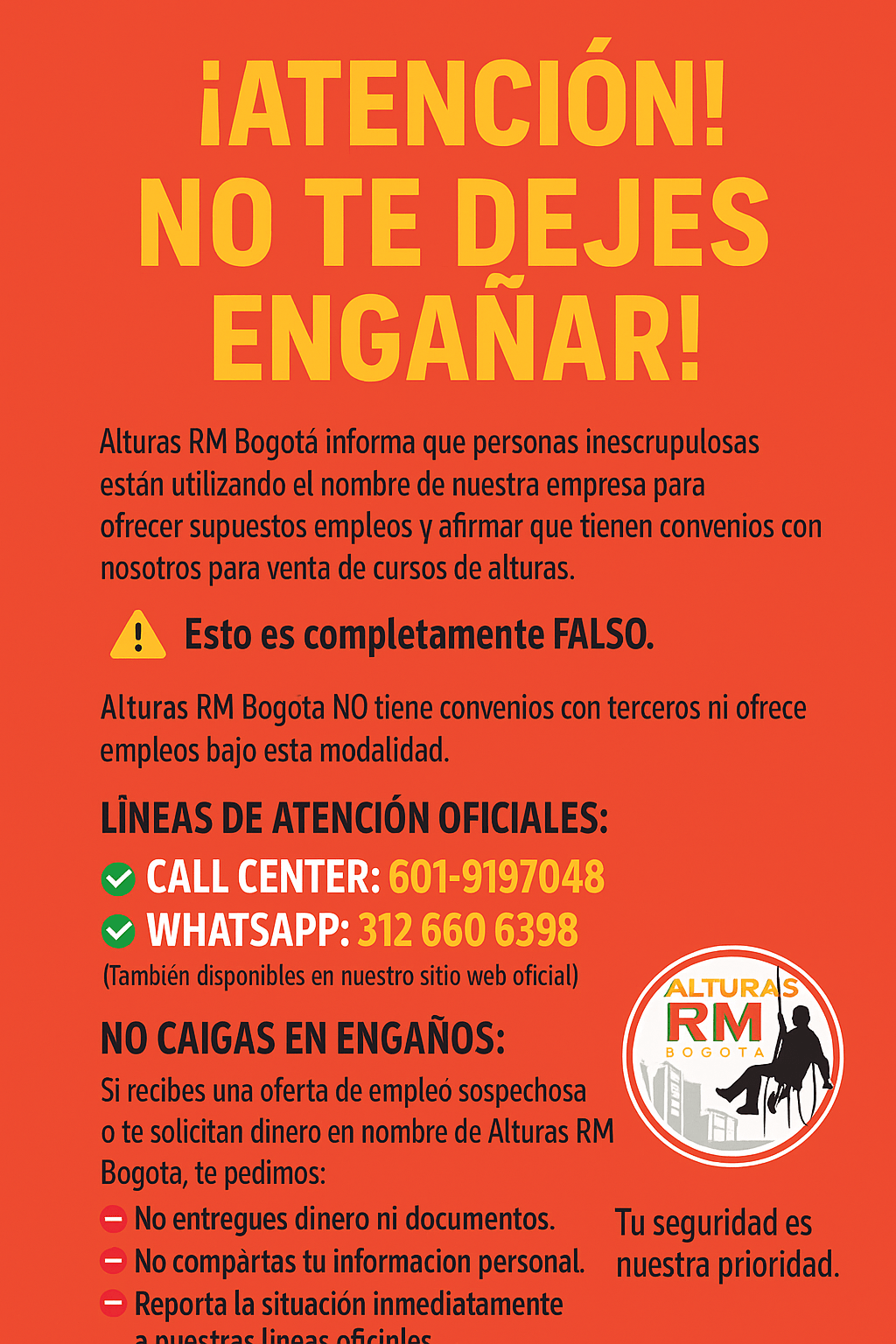 - Requisitos Previos: Ser supervisor o tener experiencia previa en trabajos en alturas.